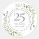 Sticker Rond Aquarelle douce Feuilles 25e anniversaire