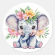 Sticker Rond Aquarelle Eléphant mignon avec fleurs