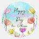 Sticker Rond Aquarelle et encre Tulipes artistiques Fête des mè