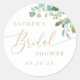 Autocollants de douche nuptiale conçus sur mesure avec typographie en or de feuille élégante, avec eucalyptus aquarelle et design verdoyant.