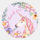Sticker Rond Aquarelle Fleur Unicorn Girl Merci