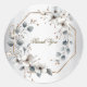 Sticker Rond Aquarelle Fleurs blanches Cadre doré Argent Turquo