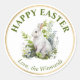 Sticker Rond Aquarelle Fleurs de printemps et lapin Joyeux Pâqu