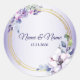 Aquarelle Florale Géométrique Golden violet Mariage Classic Round Sticker. Unique, beau, design moderne. Facile à personnaliser. Le style de police, la taille et les couleurs peuvent être modifiés. Éléments correspondants disponibles.