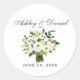 Sticker Rond Aquarelle Floral Vert Blanc Bouquet Mariage