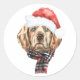 Sticker Rond Aquarelle Golden Retrier Père Noël Noël