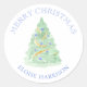 Sticker Rond Aquarelle Green Christmas Tree Grille millénaire