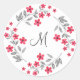 Sticker Rond Aquarelle gris rouge Fleur Wreath