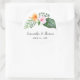 Un arrangement vibrant d'hibiscus aquarelle et de feuillage tropical met en évidence cet autocollant de faveur coloré. Les jolies fleurs d'hibiscus aquarelles sont dans les tons pêche et orange avec des palmiers tropicaux et des accents de verdure. Un choix parfait pour les mariages sur la plage, les mariages de destination, les mariages à thème tropical, les luaus, les fêtes et plus encore. Personnalisez avec le texte souhaité en modifiant l'exemple de texte dans le modèle de conception facile à utiliser. Aloha !