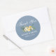 Sticker Rond Aquarelle Jaune Blanc Floral Dusty Blue Mariage