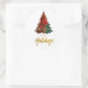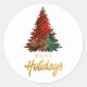 Aquarelle rouge et verte Joyeuses fêtes Noël Arbre de Noël Sticker rond classique