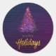 Aquarelle violette Joyeux Noël Arbre de Noël Sticker rond classique