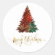 Aquarelle Or Joyeux Noël Arbre de Noël Design Classic Sticker rond