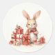 Sticker Rond Aquarelle Lapin De Noël Avec Cadeaux