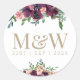 Aquarelle Bride Groom Monogram Or Blanc Classic Round Sticker. Bel design blanc et or avec typographie moderne et initiales de couple. Superbes fleurs d'aquarelle peintes à la main et des feuilles en bordeaux, marron, marsala, corail, roses, verts et gris bleu riches imprimés sur ivoire blanc avec de beaux textes de couleur or antique. Personnalisez avec le nom de la mariée et du marié et la date du mariage, vous pouvez ajuster l'exemple de texte et/ou de couleurs comme vous le souhaitez. Excellent pour les scellés d'enveloppe et favoriser les étiquettes. Visitez notre magasin Austen & Grace pour voir la suite mariage complète, les produits correspondants et plus encore, et contactez-nous si vous avez besoin d'aide contact@austenandgrace.com