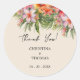 Célébrez votre journée spéciale dans l'élégance tropicale avec notre étonnante aquarelle mariage fleurs tropicales. Cet autocollant de remerciement magnifiquement conçu présente des fleurs tropicales exotiques et vibrantes délicatement peintes dans des tons pastel doux, créant une atmosphère romantique et fantaisiste pour vos invités. Utilisez les outils Personnaliser et Créer pour modifier le texte, les polices et les couleurs.
