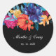 Ajoutez une finition élégante à vos enveloppes d'invitation ou à votre sac de faveur. Nous aimons les couleurs vives et les designs audacieux, alors nous voulions quelque chose qui serait amusant et fantaisiste mais encore assez classe pour un mariage. Cet autocollant a une abondance de fleurs colorées et de typographie moderne sur un arrière - plan noir pour un look floral sophistiqué - qui s'adapterait à un mariage printemps/été.