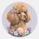 Sticker Rond Aquarelle mignonne de chien de caniche Floral pour