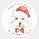 Sticker Rond Aquarelle mignonne Maltese Père Noël Joyeux Noël