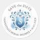 Ces autocollants de douche nuptiale portent le nom de la mariée, la date initiale monogrammée et la date de la douche avec une élégante crête d'aquarelle dans les tons bleus. Utilisez-les pour vos scellés d'enveloppe mariage. Pour voir les articles correspondants de Victoria Grigaliunas visitez DoTellABelle sur Zazzle à https://www.zazzle.com/collections/tropical_pink_and_orange_hibiscus_flower-119579024690102118 Art unique et design exclusif à Do Tell A Belle.