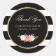 Elégante coutume noir et blanc rayé mariage floral merci autocollants ronds avec l'aquarelle des fleurs rose vif et la verdure dorée. Personnalisez facilement en ligne.
