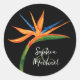 Un élégant oiseau de paradis en aquarelle sur un arrière - plan noir est présenté sur ces autocollants de 3" - parfait pour votre mariage ou toute occasion. CORRESPONDANCE d'objets dans notre collection.