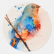 Sticker Rond Aquarelle Oiseau Peinture Toile Mur Art Bleu Oisea