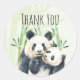 stickers Merci avec une jolie illustration aquarelle représentant une mère noire et blanche et un bébé panda ours se tenant ensemble. Maman tient son petit au milieu de tiges de bambou vertes.