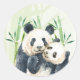 Sticker Rond Aquarelle Panda Ours Maman & Bébé en Bambou