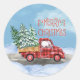 Sticker Rond Aquarelle Plaid Camion Rouge Neige Joyeux Noël