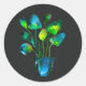 Sticker Rond Aquarelle plante art vert et bleu abstrait