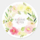 Sticker Rond Aquarelle rose et jaune couronne florale | MARIAGE
