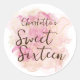 Sticker Rond Aquarelle rose et or chic Douce 16 Partie