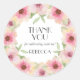 De belles fleurs d'aquarelle rose et crème et d'élégants feuilles mettent en valeur ces autocollants ronds de remerciement pour votre parti. CORRESPONDRE des articles dans notre magasin.