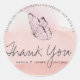 Sticker rond Mariage Merci Papillon rose mou. Le design a un arrière - plan d'aquarelle de pêche rose avec un papillon et MERCI écrit en joli police et espace pour ajouter les noms du couple et la date mariage. Ce mignon autocollant peut être facilement customisé en changeant les noms et la date. Pour toute personnalisation supplémentaire, n'hésitez pas à me contacter à l'adresse mypaperlove2021@gmail.com