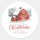 Sticker Rond Aquarelle Rouge Grange Joyeux Noël