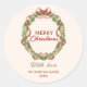 Sticker Rond Aquarelle Rouge Vert Bow Wreath Joyeux Noël