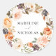 Élégants autocollants de mariage floral d'automne pour vos invitations de mariage et/ou faveurs avec une couronne de fleurs d'aquarelle, succulents, et feuilles dans les tons de rose roux, pêche, orange, crème, brun et vert. Personnalisez les autocollants de mariage fleuri rustique en ajoutant vos noms. Conçu pour coordonner avec notre collection de mariages de fleurs de automne rustique Watercolor.