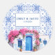 Sticker Rond Aquarelle Santorini Grèce mariage bleu et blanc