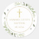 Doté de délicats feuilles d'aquarelle et d'un élégant crucifix en or, ce baptême ou autocollant chic et neutre pour hommes peut être personnalisé avec vos informations spéciales sur l'événement. Conçu par Thisisnotme©