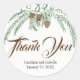 Belle éraflure de verdure descend sur le côté de ce mariage merci autocollant. Trois pinecones marron sont au centre. Le Merci est écrit dans une belle police de caractères marron. Vos noms et date de mariage sont ci-dessous. Très moderne et minimal.