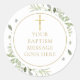 Doté de délicats feuilles d'aquarelle et d'un élégant crucifix en or, cet élégant autocollant de baptême ou de baptême peut être personnalisé avec vos informations spéciales sur l'événement. Conçu par Thisisnotme©