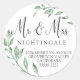 Sticker Rond Aquarelle Verdure Script Mariage Adresse de retour