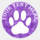 Version blanche de l'empreinte de patte. Autocollants personnalisés pour décoration et étiquetage. Version d'aquarelle violette. Le texte peut être modifié pour la personnalisation.