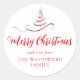 Sticker Rond Arbre à ruban rouge Joyeux Noël Script