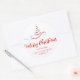 Cet autocollant de vacances moderne est doté d'un ruban rouge et argent faux feuil sapin de Noël arrosé de faux parties scintillant argent, et les mots "Joyeux Noël" dans un script de calligraphie rouge élégant. Personnalisez-le avec le nom de votre famille dans la police serif.