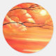 Sticker Rond Arbre Abstrait et coucher de soleil rouge