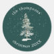 Sticker Rond Arbre de Noël élégant Snowfall Green