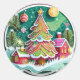 Ce design festif est orné d'un sapin de Noël joliment décoré et entouré de charmantes cabanes, évoquant une atmosphère hivernale merveilleuse.