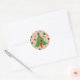 Autocollant rond de Noël en forme de fusée rétro atomique de style moderne du milieu du siècle. Un autocollant festif et futuriste pour emballer les cadeaux de Noël, pour les fans du style d'illustration moderne du milieu du siècle. L'arbre décolle dans l'espace, avec des boules en guise d'étoiles. Une décoration nostalgique pour la saison des fêtes pour les amateurs de design graphique traditionnel et vintage. Pour une décoration de Noël économique ou comme simples décorations à coller dans la maison.